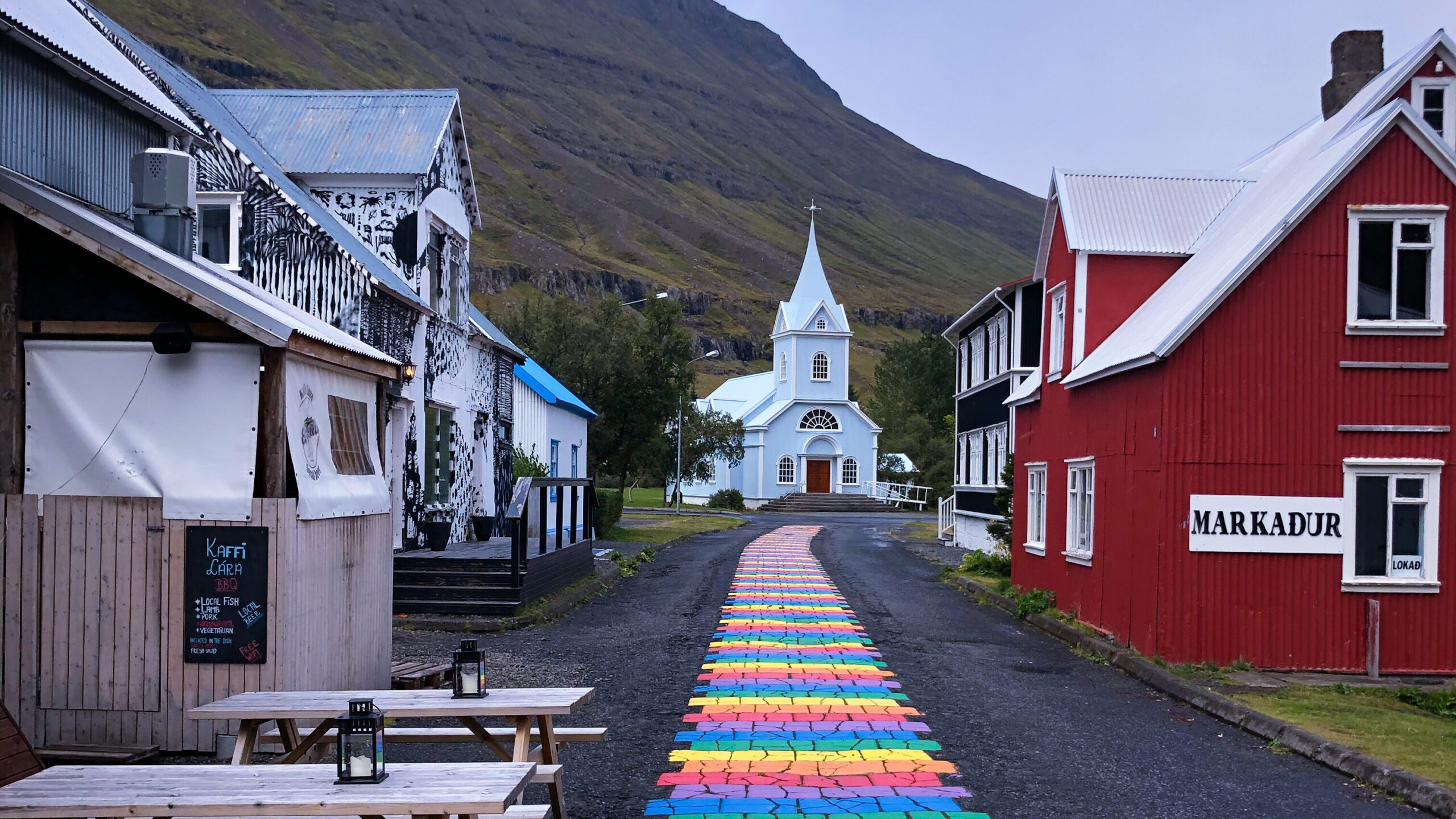 Nach unserem Aufenthalt fuhren wir nach Seyðisfjörður, der Stadt mit dem wichtigsten Hafen an der Ostküste. Die kleine Stadt ist einer der schönsten Orte Islands: Idyllisch am Ende des gleichnamigen Fjordes gelegen reihen sich einige bunte Häuser an die steilen Klippen und die farbenfrohe Rainbow Street vor der hellblauen Holzkirche ist ein beliebtes Fotomotiv geworden. Aufgrund der vielen Menschen, die über den internationalen Hafen ankommen, hat sich auch eine attraktive Restaurantszene entwickelt. Ungewöhnlich viele gute Cafés und Lokale finden sich in Seyðisfjörður. Besonders empfehlen können wir das Hotel Aldan, das sowohl köstliche Pancakes zum Frühstück sowie gute Sushi (vorübergehend geschlossen) zum Abendessen anbietet – und außerdem noch gemütliche Zimmer anbietet. Wir haben damals in einem ehemaligen Bankgebäude übernachtet.